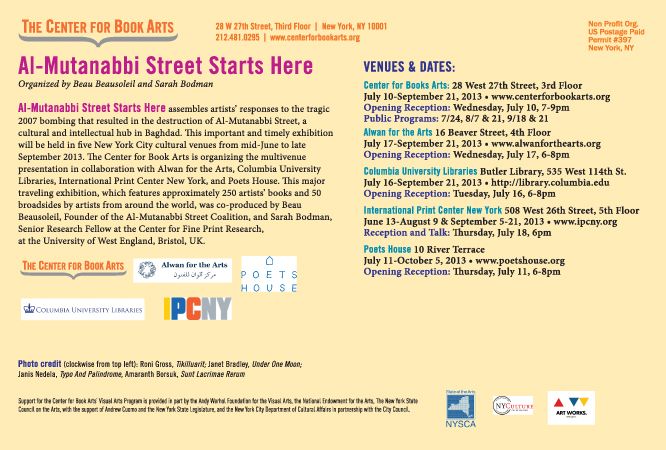 21 August: reading/talk at Center For Book Arts: Deborah Poe, Meena Alexander, Natalya Handal, Laurie Alpert